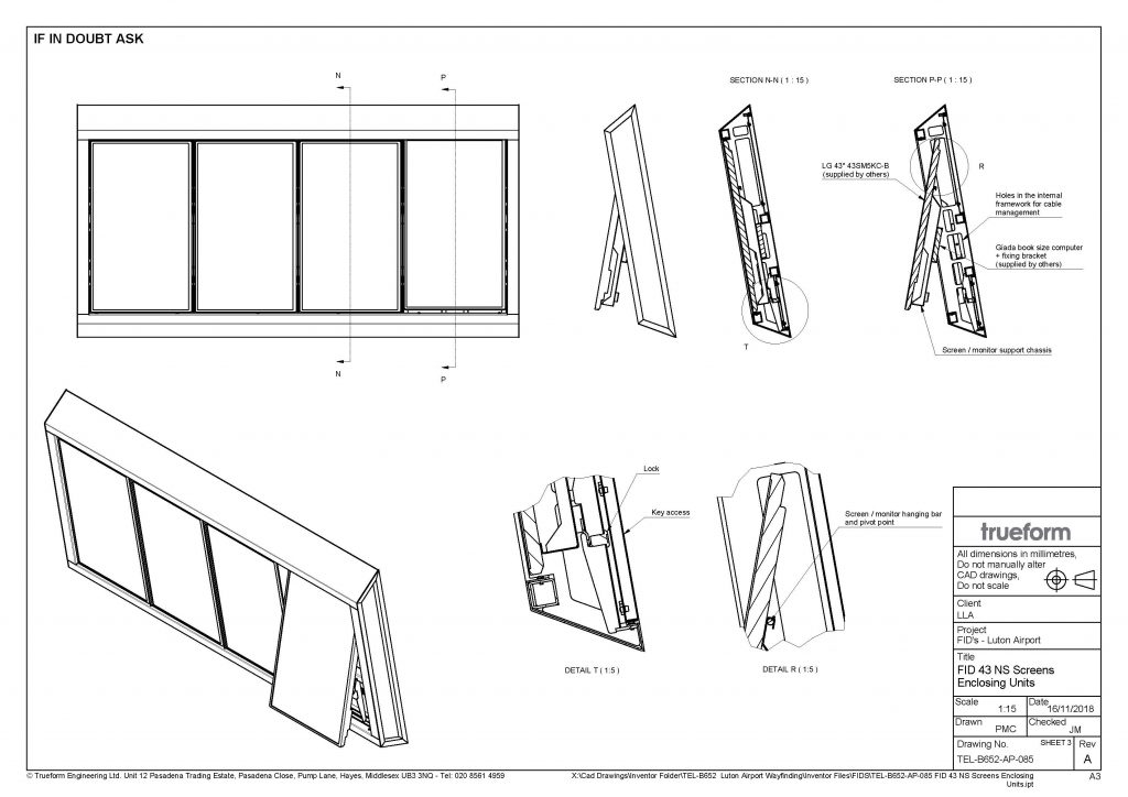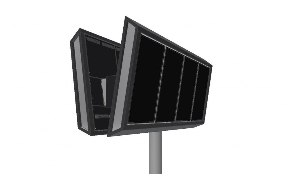 From all the products, I must highlight the Flight Information Displays structures as I managed to develop a modular solution that allowed an easier and more smooth fabrication process as decreased dramatically the number of different parts, and at the same time made the installation process more simple. Also, in this product, the electronic and electrical components are made easy accessible to maintenance by design.