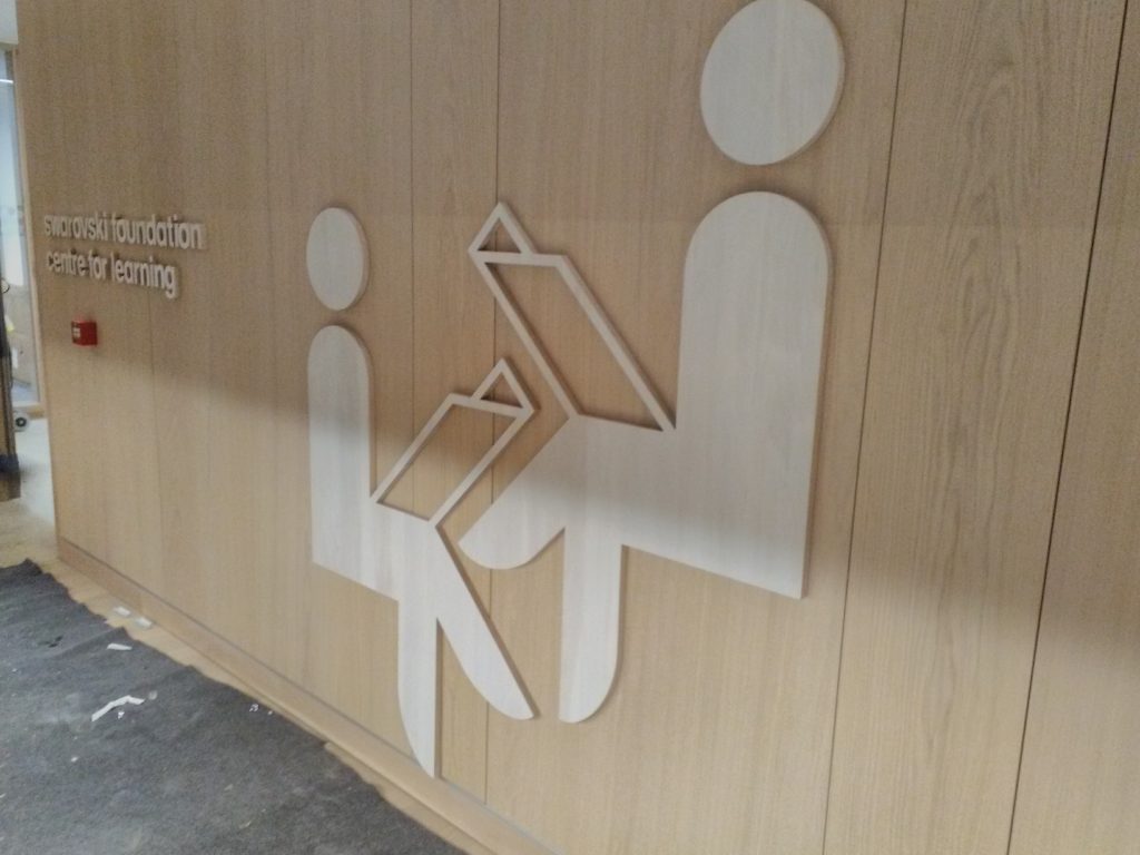 This project have a large variety of objects and materials. Starting with a set of flag poles on Kensington High Street, passing through the 3D aluminium letters on the passage way and the CNC engraved Corian panels and the CNC cut letters on the Museum entrance, to the wood room names and graphics.